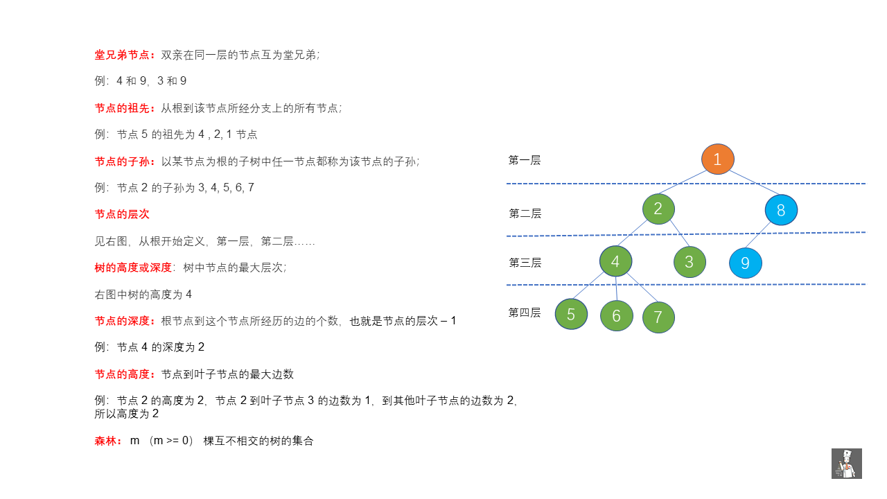 这里节点的高度和深度可能容易记混,我们代入到现实即可。